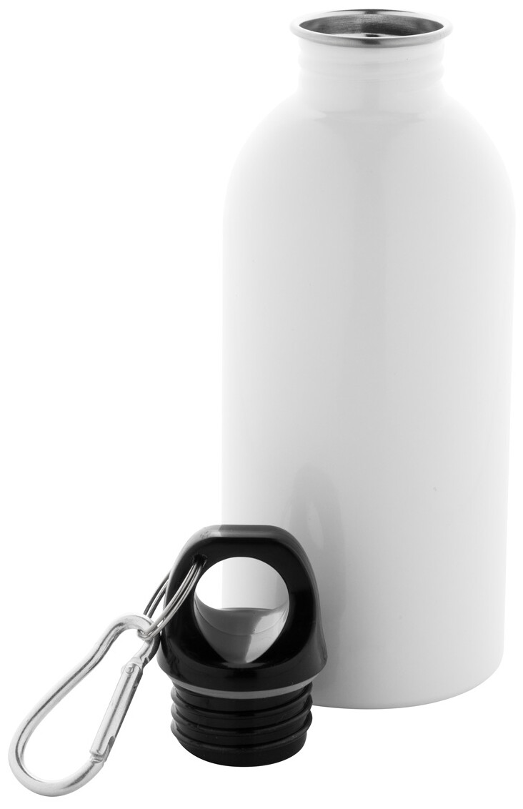 Láhev z recyklované nerezové oceli pro sublimační potisk s hliníkovou karabinou, 400 ml.