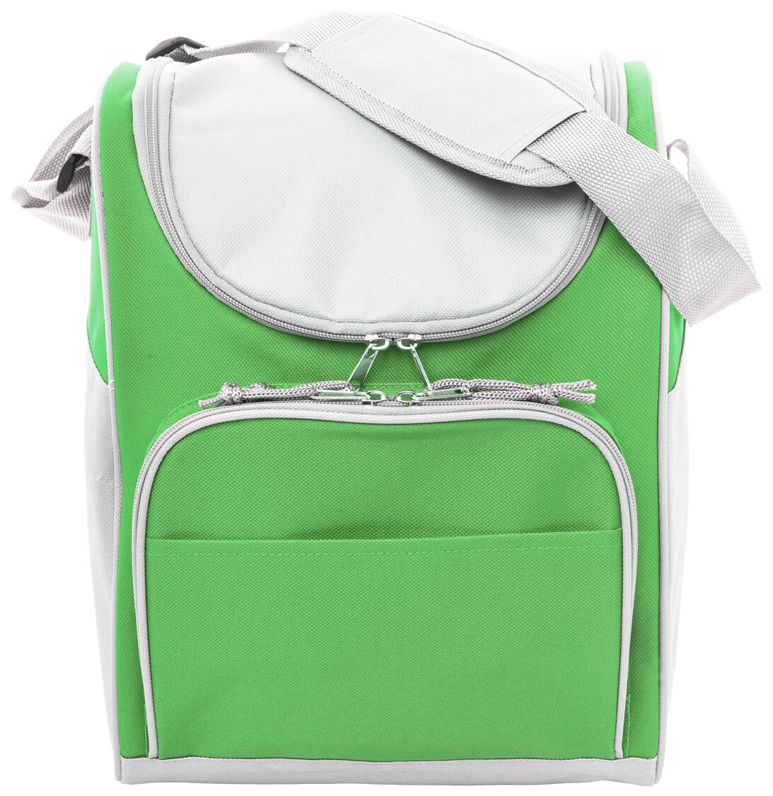 Chladicí taška RPET s hliníkovým polstrováním. Se 2 přihrádkami na zip, malou přední kapsou a nastavitelným ramenním popruhem. 600D RPET polyester s výrazným štítkem RPET.