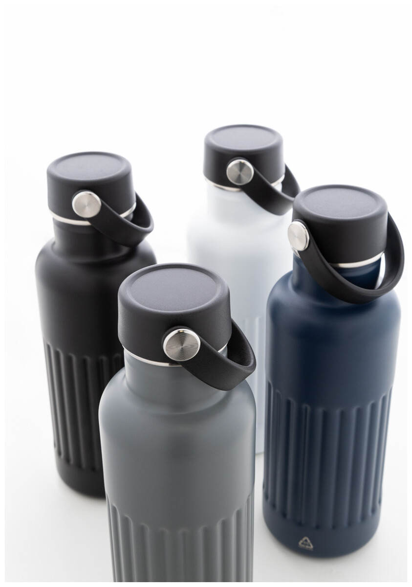 Dvoustěnná vakuově izolovaná láhev z recyklované nerezové oceli s PP plastovým přepravním víčkem. 500 ml.