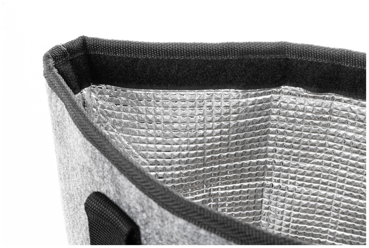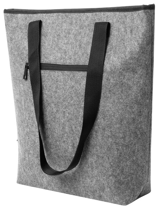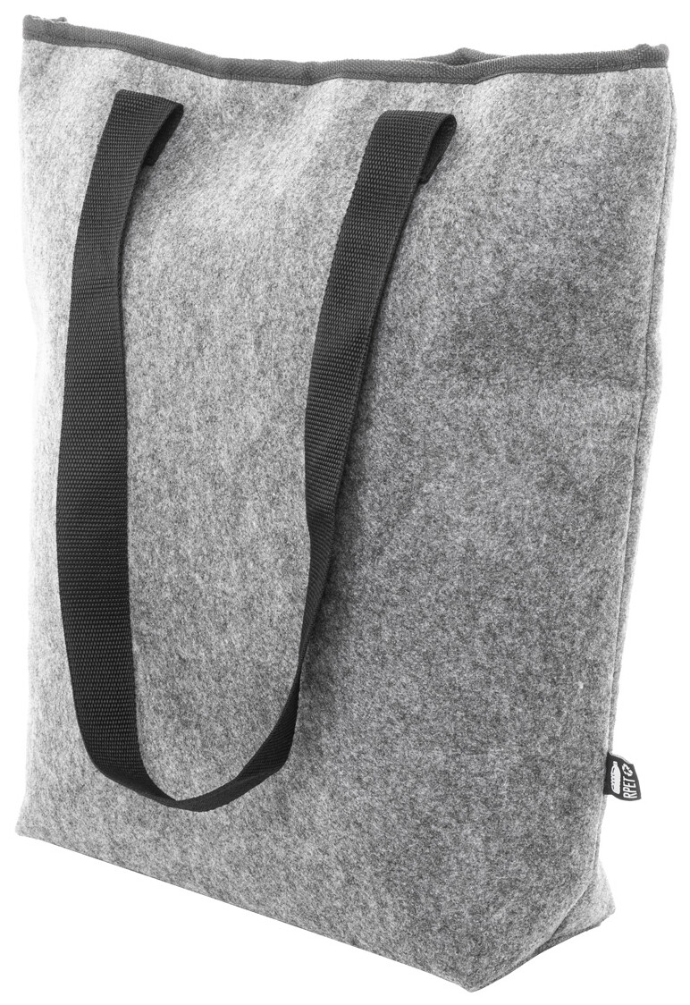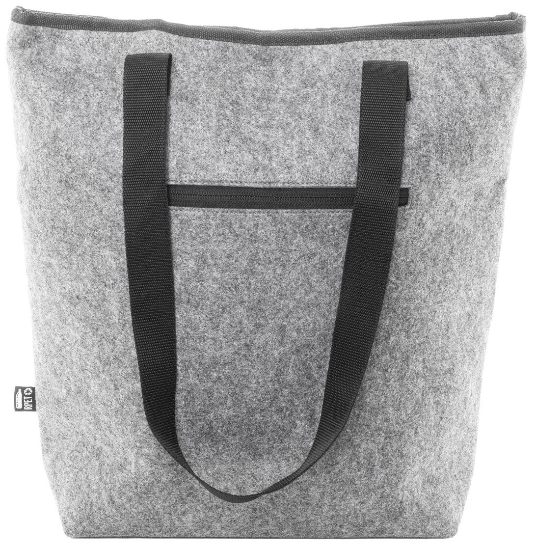 Chladicí nákupní taška z RPET plsti s hliníkovou výplní. Se zapínáním na suchý zip, přední kapsou na zip a dlouhými uchy. S výrazným štítkem RPET.