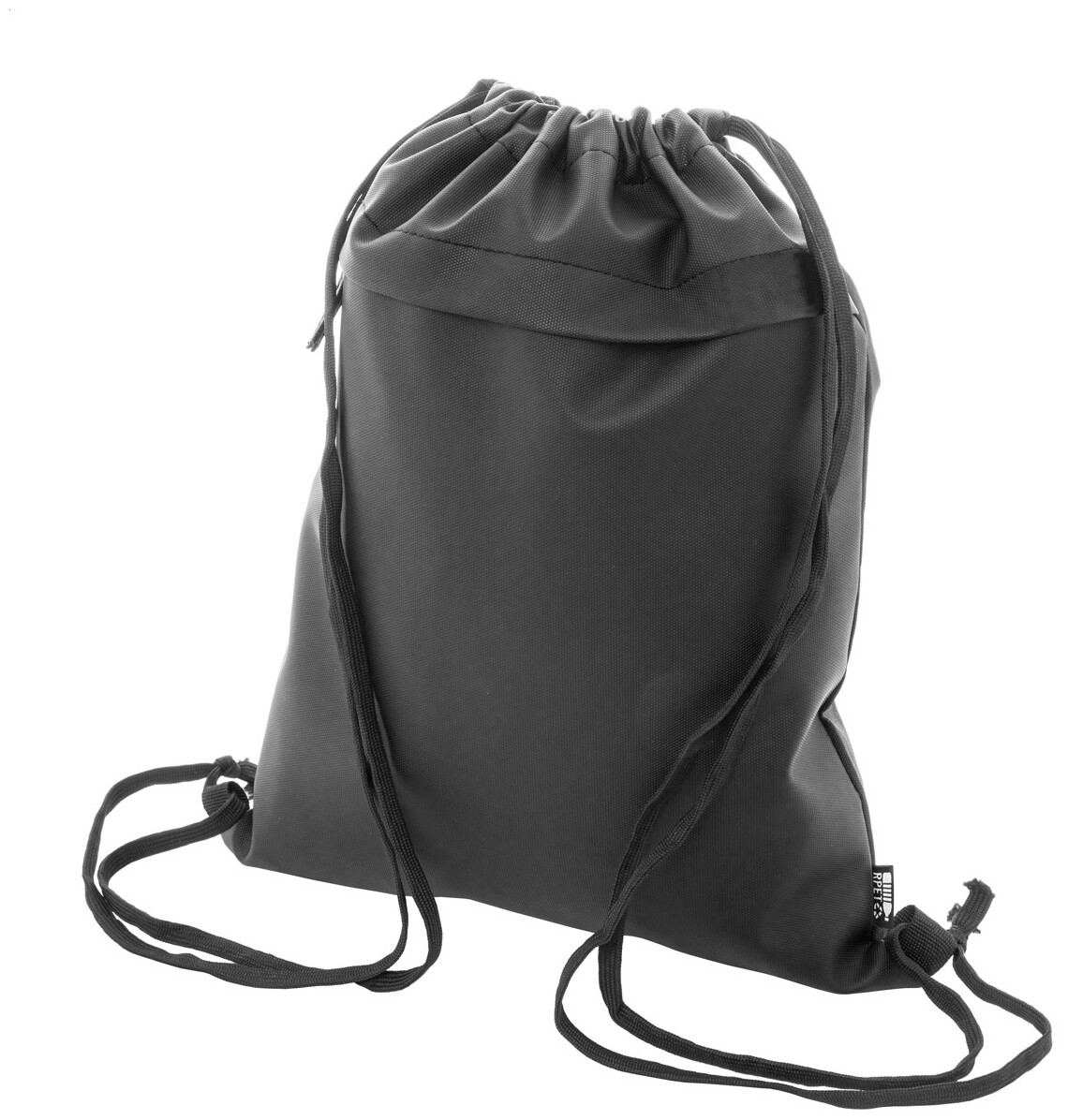 RPET vak se stahovací šňůrkou,s přední stranou potaženou PU a přední kapsou na zip. Polyester 600D RPET potažený PU s výrazným štítkem RPET.