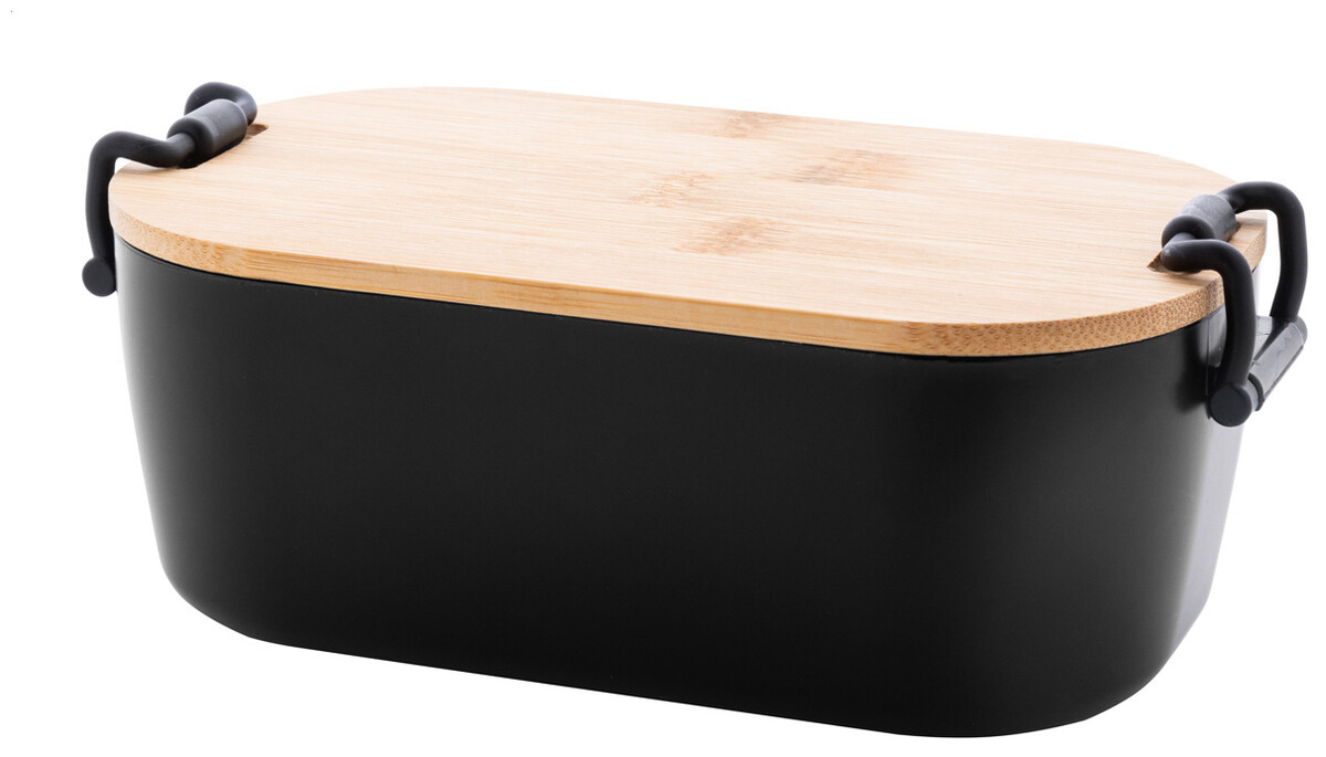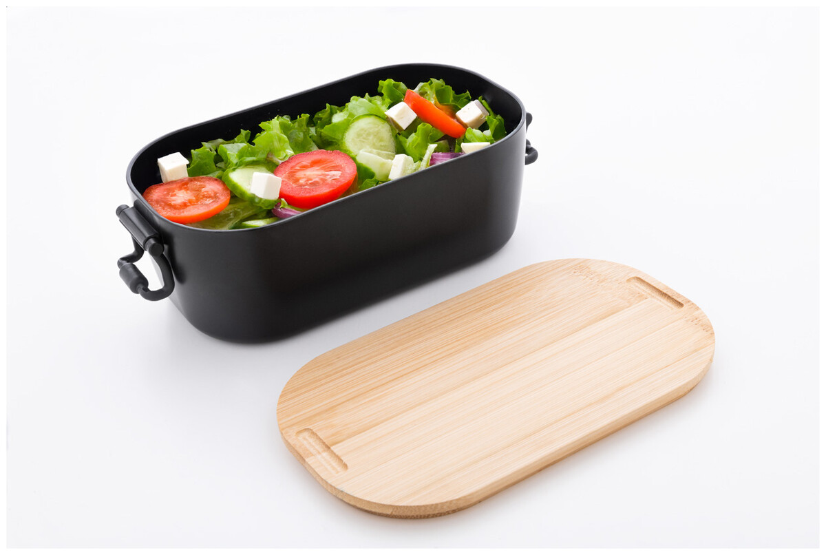 Box na jídlo z PP plastu s bambusovým víkem a uzávěrem na přezku, 1000 ml.