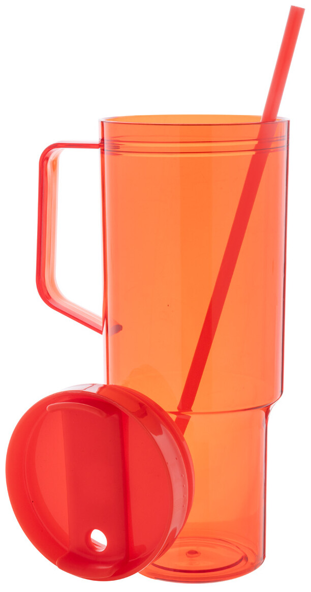 Jednostěnný cestovní hrnek z RPET s PP víčkem na pití a brčkem v odpovídající barvě. 1200 ml.