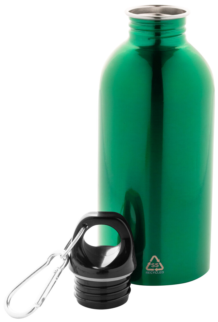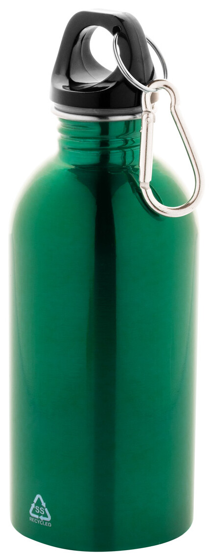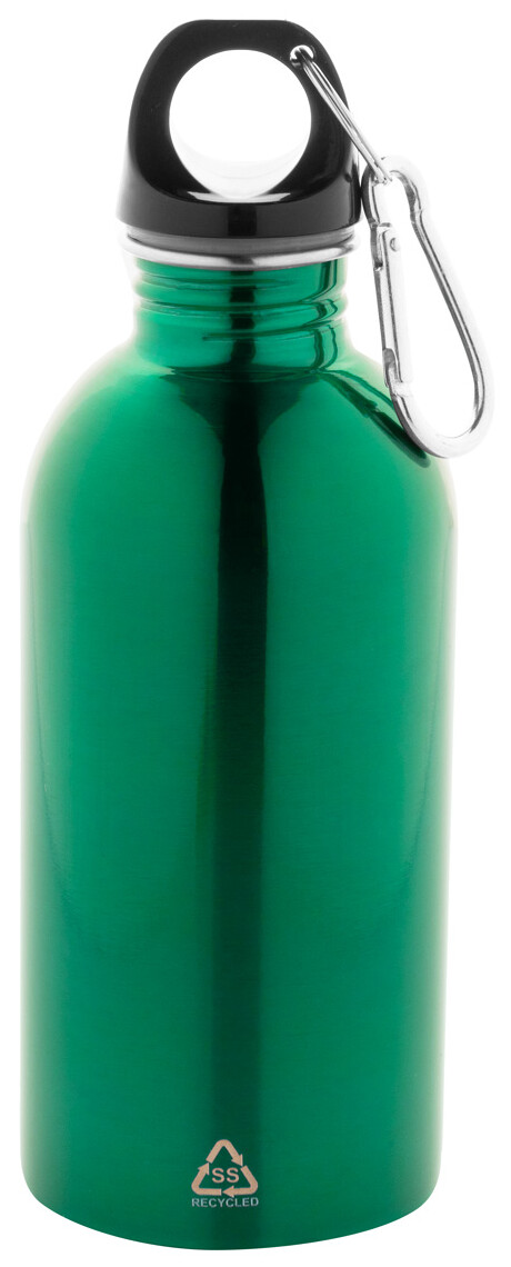 Láhev z recyklované nerezové oceli s hliníkovou karabinou, 400 ml.