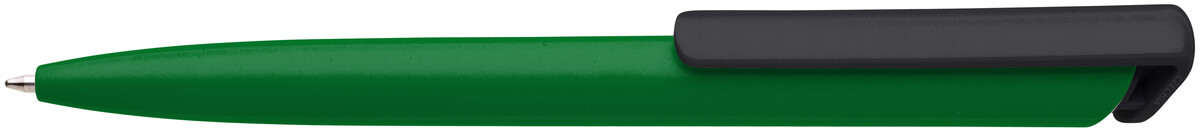 Česká propiska BOIA v minimalistickém designu zeleného oválného těla s dynamickým tvarem černého masivního klipu. Tělo i klip nabízí velký prostor pro značení logem zákazníka. Materiál plast, náplň velkoobsahová, modře píšící. BOIA je vyráběna v České republice.