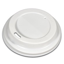 Plastové víčko bílé pro teplé nápoje, průměr 80 mm (100 ks), v kartonu po 1000 ks (10 balení) – prodejní balení obsahuje 10 balení, v každém balení je 100 ks. Bílé plastové víčko je vhodné pro nápoje o objemu 0,2 l a 0,3 l. Víčko slouží k uzavření kelímku, čímž zabraňuje rozlití nápoje a vstupu nečistot.