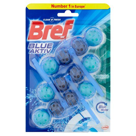 Bref Blue Aktiv WC blok zajišťuje dokonalou hygienu, čistotu a svěžest vaší toalety mezi každým spláchnutím díky modře zbarvené vodě s aktivními látkami.