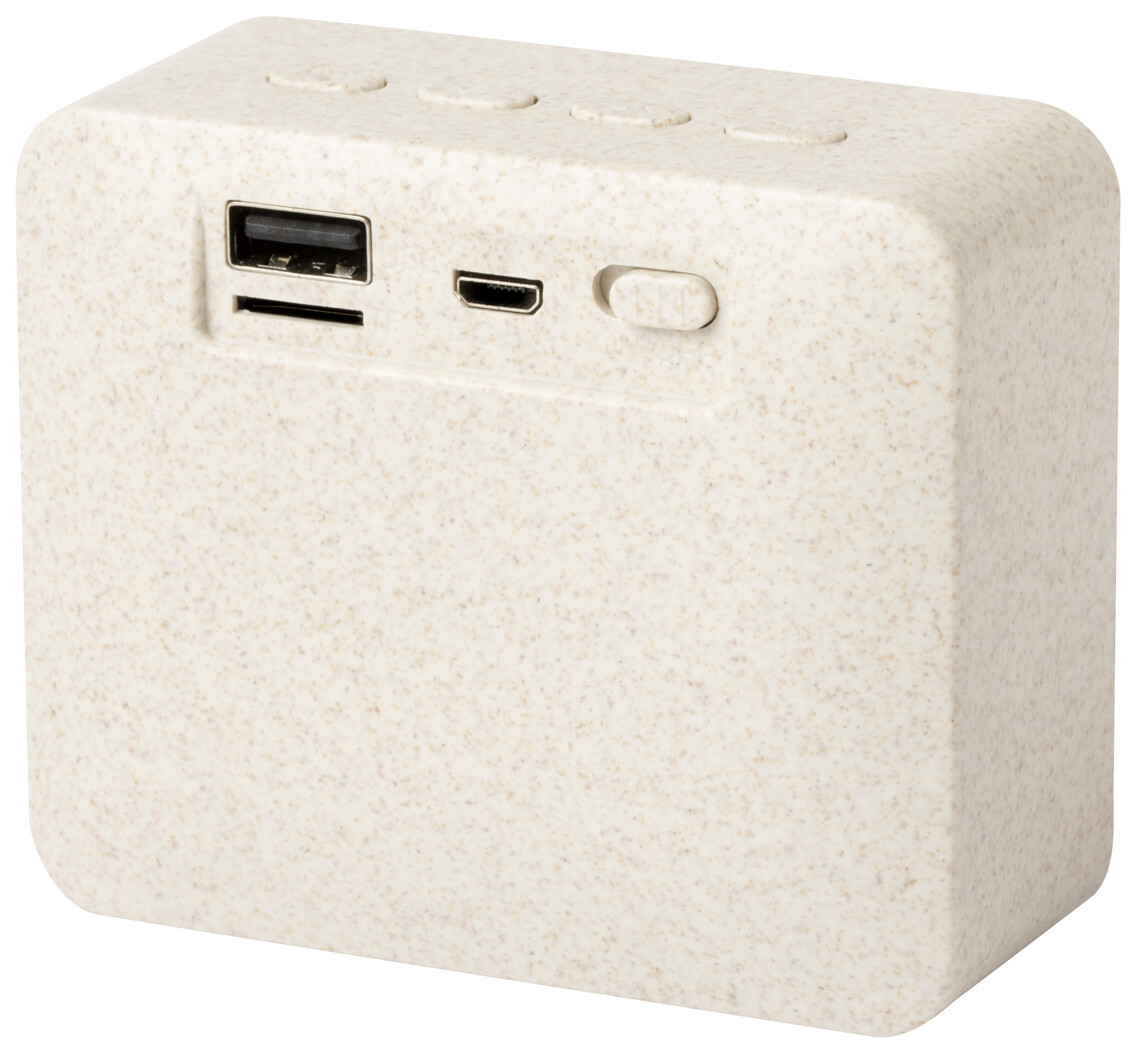 Bezdrátový reproduktor s ekologickým plastovým krytem z pšeničné slámy a dobíjecí baterií. Funkce přehrávání přes USB a micro SD. Včetně nabíjecího kabelu USB.