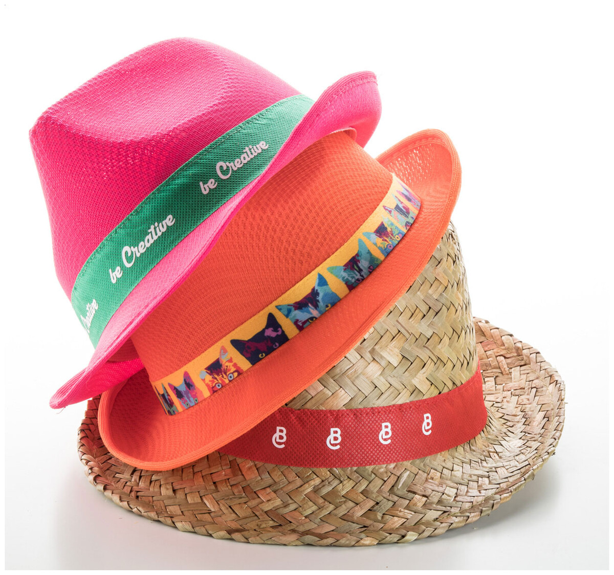 Barevný pásek z netkané textilie pro slaměné klobouky.