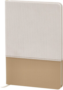 Blok A5 potažený texturovaným polyesterem a recyklovanou PU kůží se záložkou a 80 linkovanými listy.