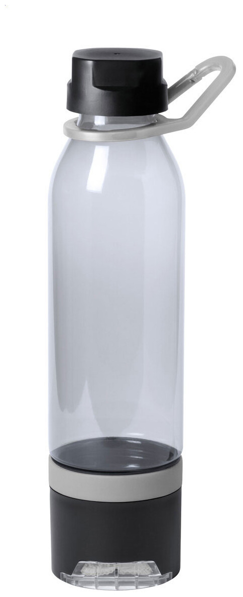 Plastová multifunkční sportovní láhev s chladicím ručníkem (390 g/m2) ve spodní přihrádce a výsuvným držákem na mobilní telefon. V dárkovém balení. Objem 650 ml. Není vhodná pro sycené nápoje.