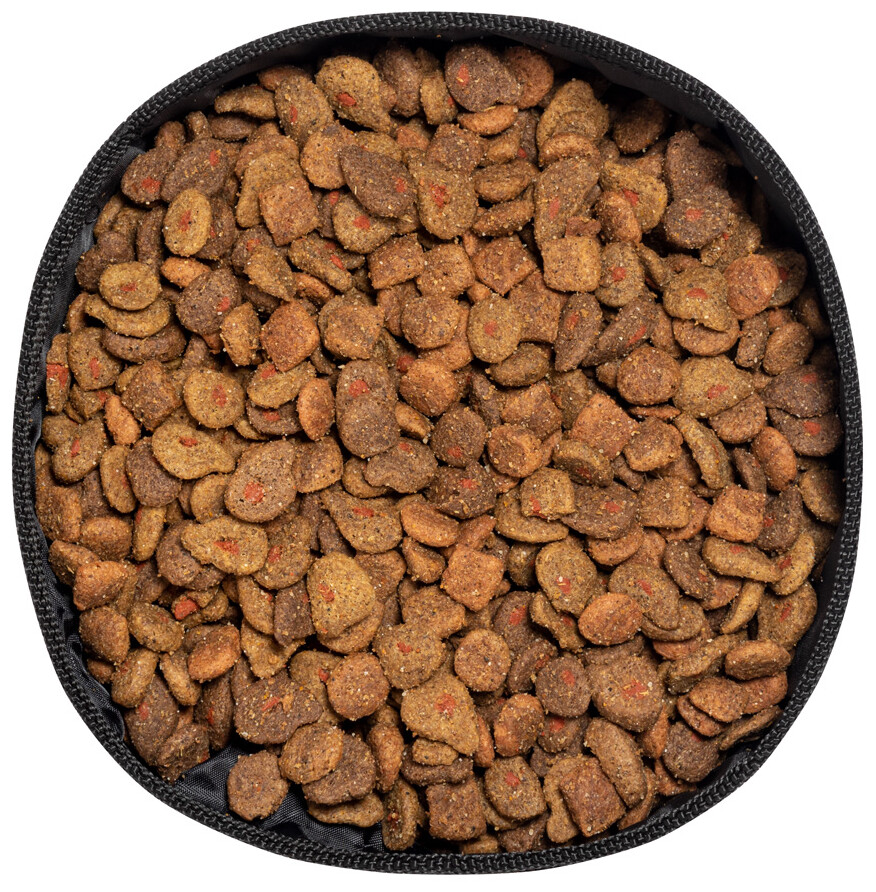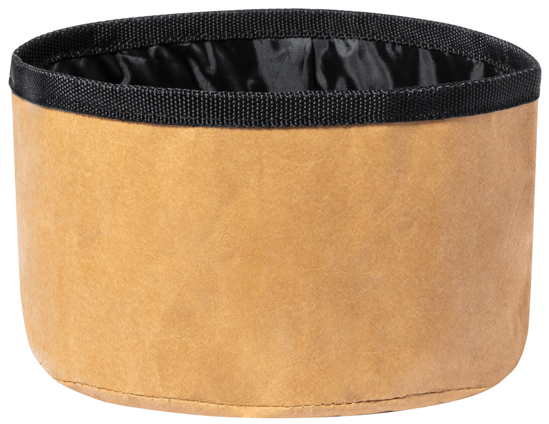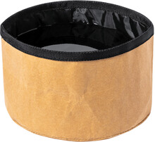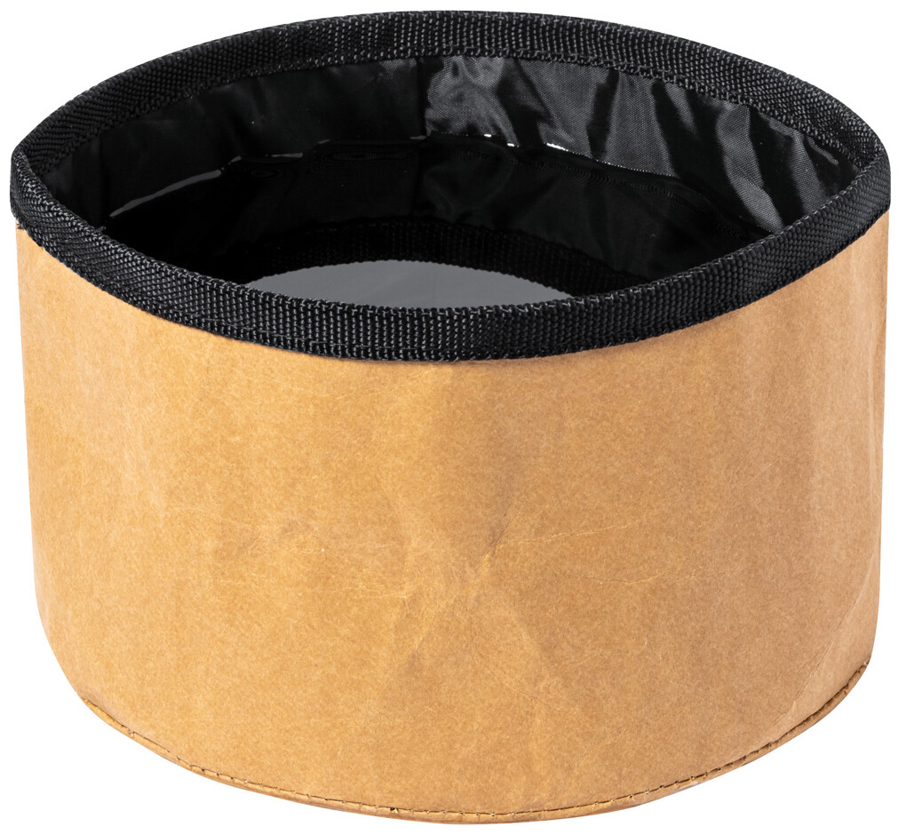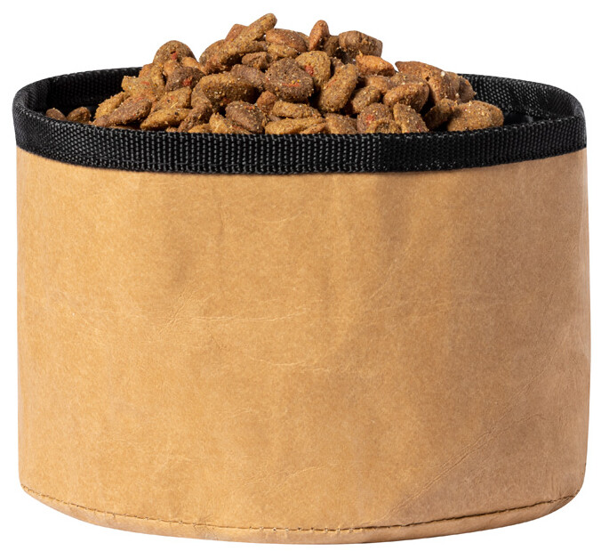Skládací miska pro psy z laminovaného recyklovaného papíru a RPET polyesteru.