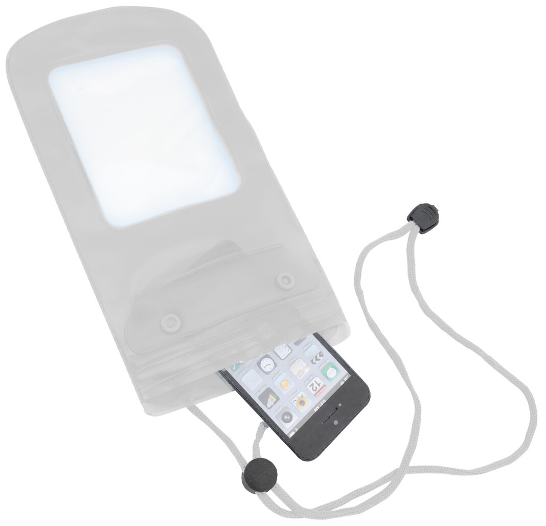 Voděodolné PVC pouzdro na mobil se šňůrkou na krk.