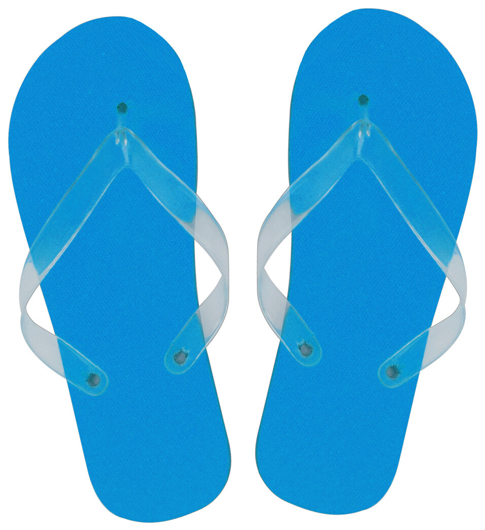 Plážové pantofle s průhledným páskem. Materiál: recyklovaná EVA podrážka + PVC pásek.