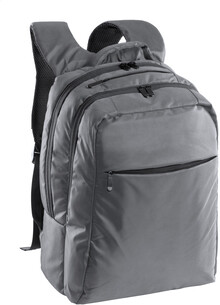 Batoh s mnoha přihrádkami na zip, vypolstrovanou přihrádkou na laptop (15"), vypolstrovanými zády a popruhy, 600D nylon.