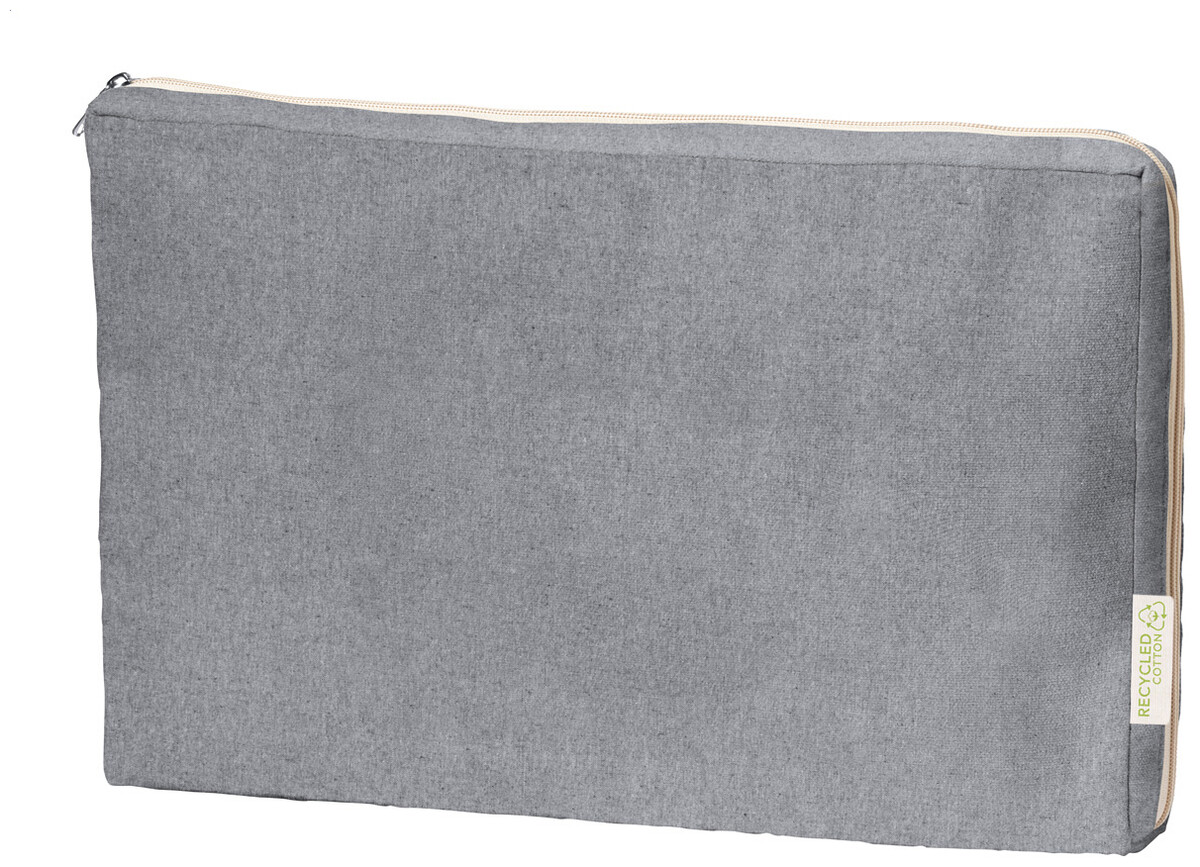 Polstrovaná kapsa na notebook z recyklované bavlny s přihrádkou na zip a výrazným štítkem z recyklované bavlny. Vhodné pro notebooky do 15". 100% recyklovaná bavlna, 275 g/m2.