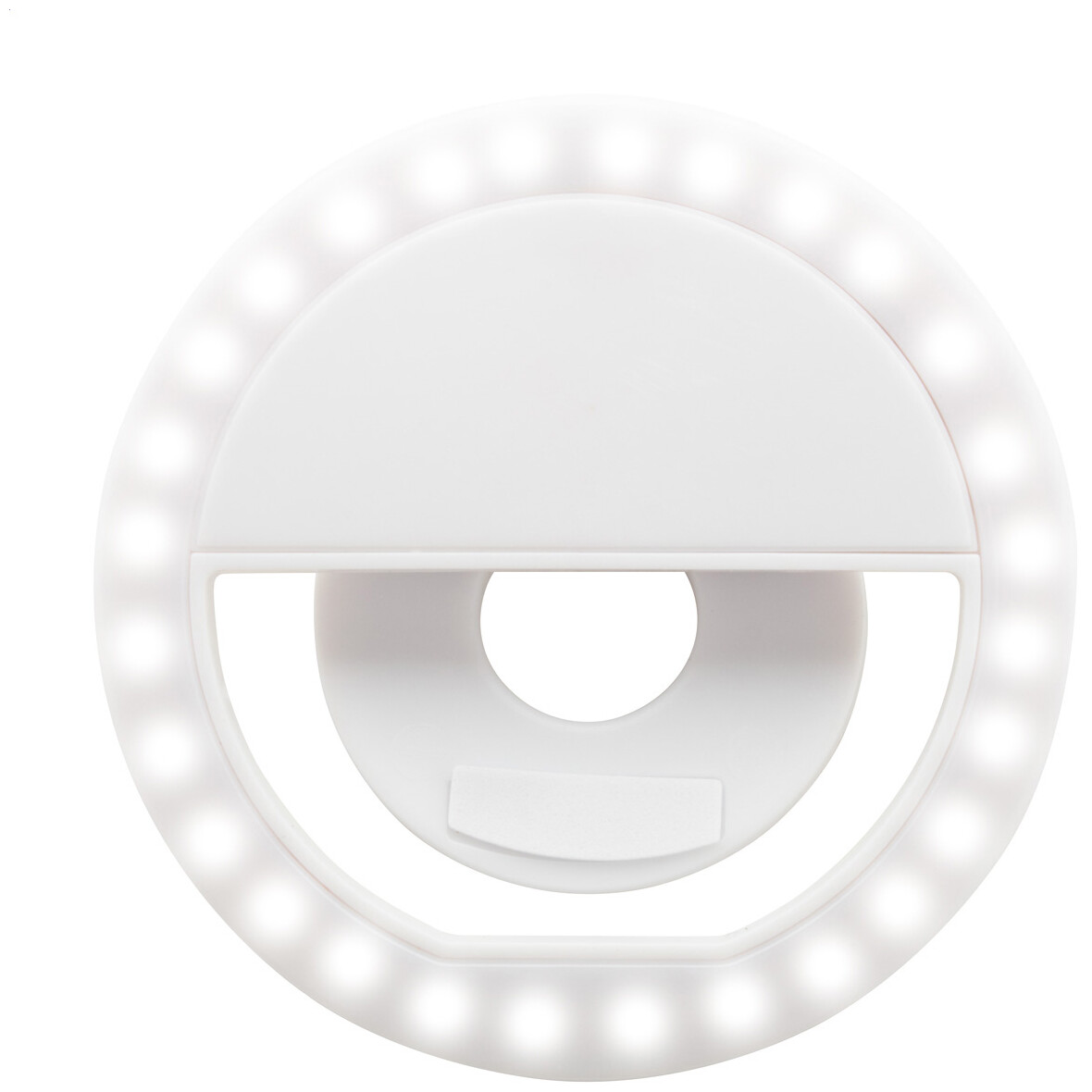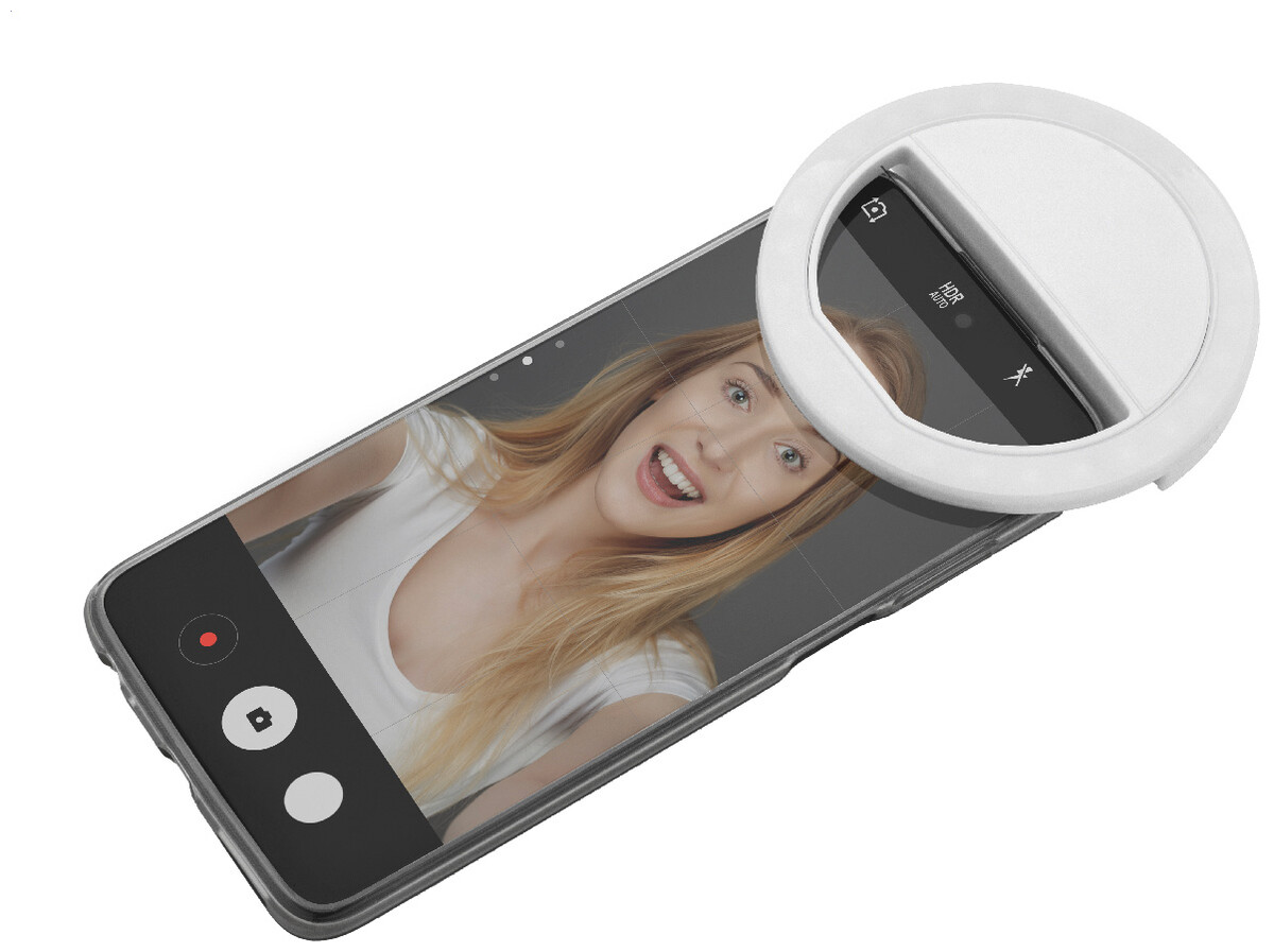 Selfie světlo z recyklovaného ABS materiálu s 28 LED diodami pro mobilní telefony. Se 3 nastavitelnými úrovněmi jasu a vestavěnou dobíjecí baterií (150 mAh). Včetně USB nabíjecího kabelu.