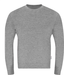 Mikina s kulatým výstřihem ze 60% organické bavlny a 40% RPET polyesteru, 280 g/m2.