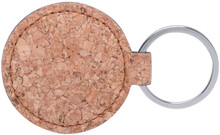 Přívěsek na klíče z přírodního korku s kovovým kroužkem.
