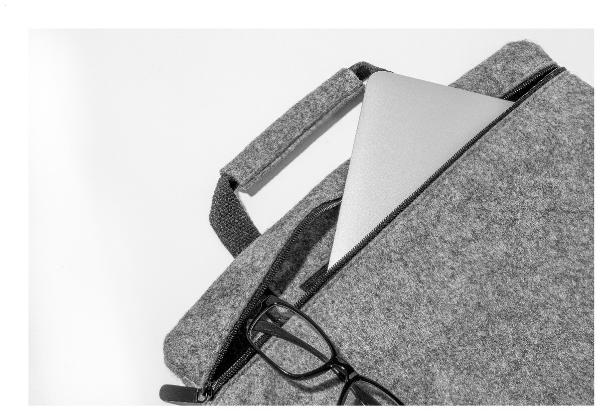 Plstěná taška na dokumenty nebo notebook z RPET s hlavní přihrádkou na zip a vnitřní kapsou na zip. Vhodná pro notebooky do 15". S výrazným štítkem RPET.