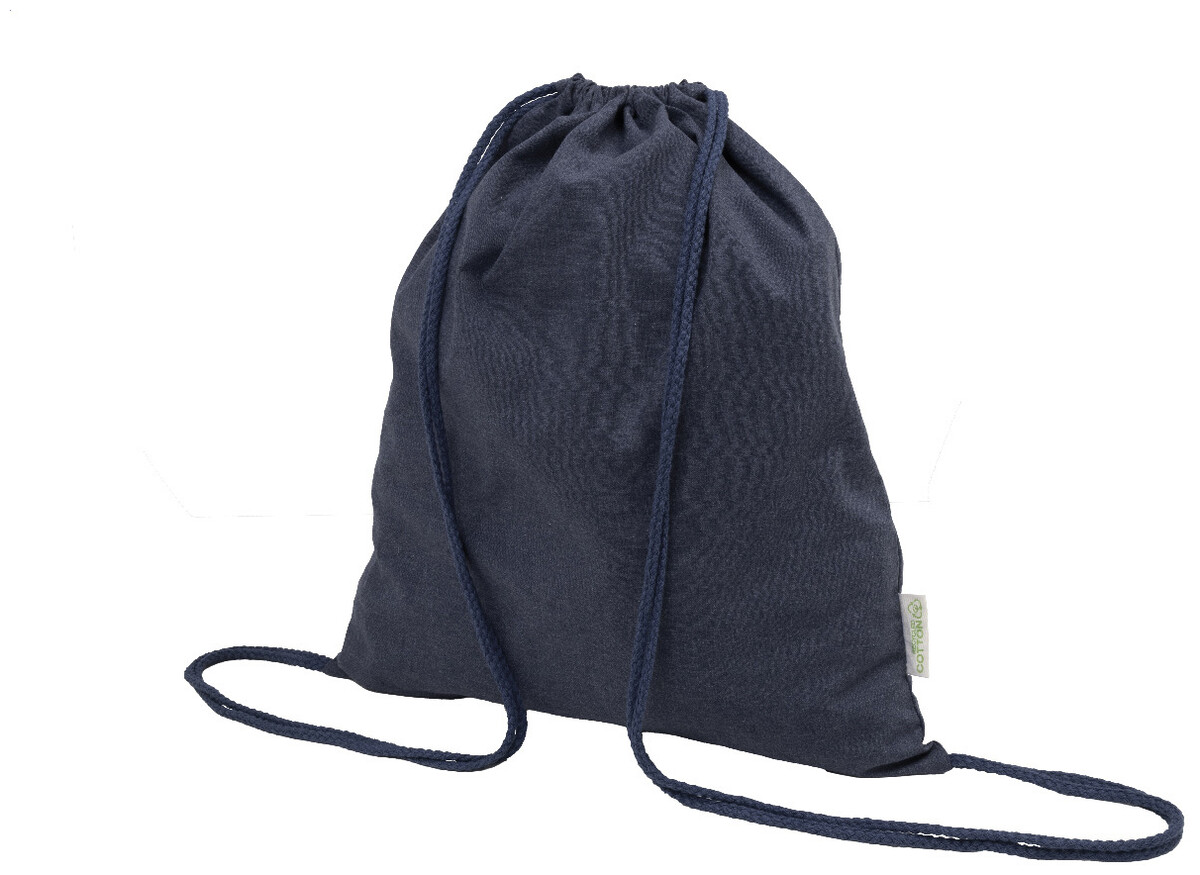 Vak se stahovací šňůrkou z recyklované bavlny Dropex, tmavě modrá