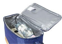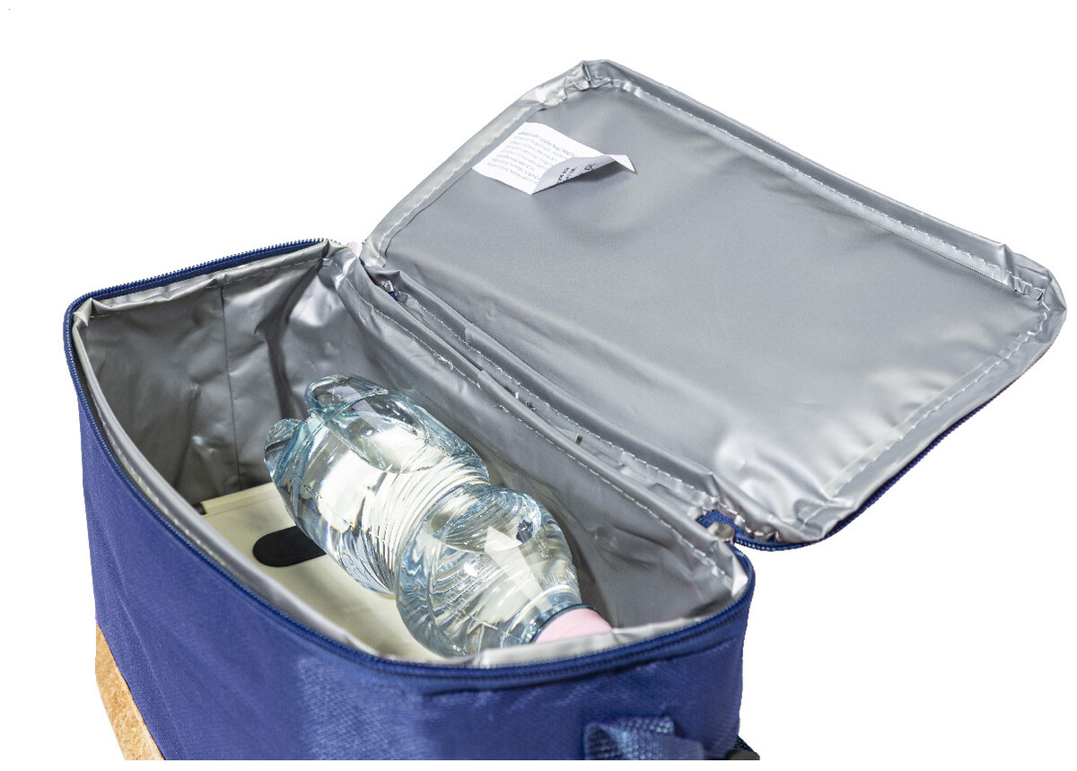 Chladicí taška na zip z 600D RPET polyesteru s přírodní korkovou základnou, PEVA polstrováním a nastavitelným ramenním popruhem. S výrazným štítkem RPET.