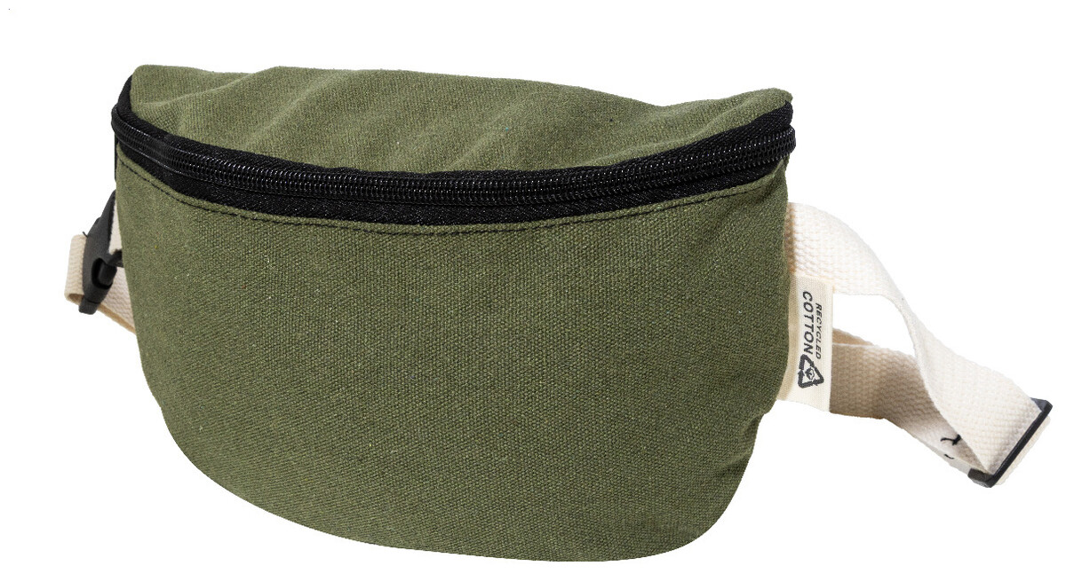 Ledvinka z recyklovaného plátna s přihrádkou na zip a nastavitelným popruhem. 70 % recyklované bavlny a 30 % recyklovaného polyesteru. S výraznou etiketou z recyklované bavlny.