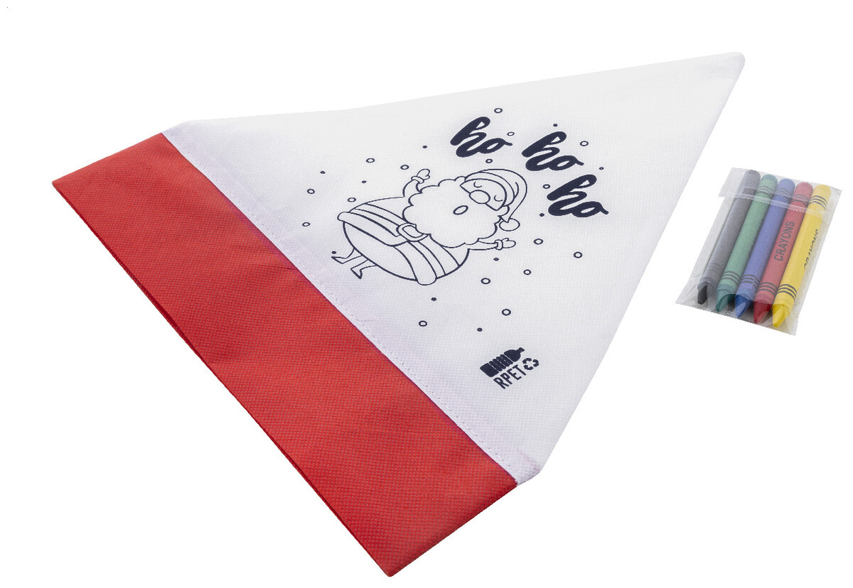 Vánoční čepice Santy z netkané RPET tkaniny na vybarvování s 5 voskovkami.