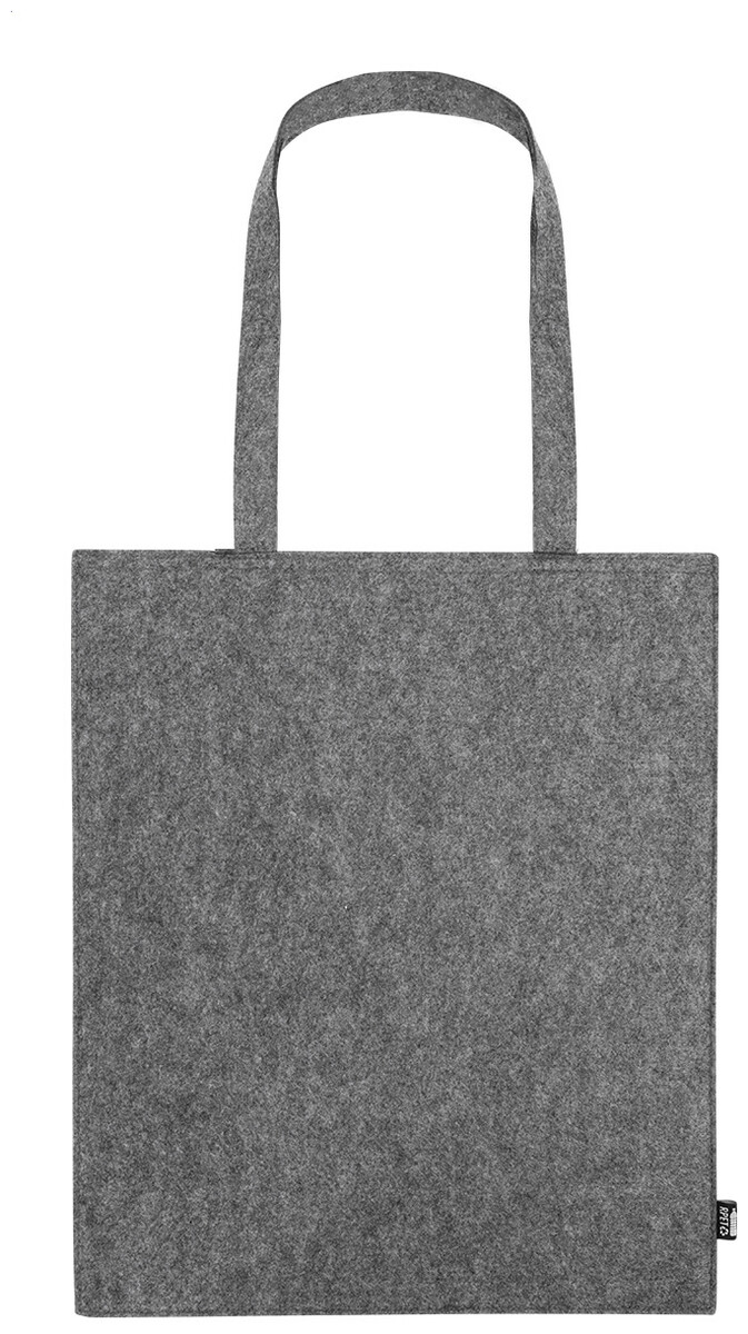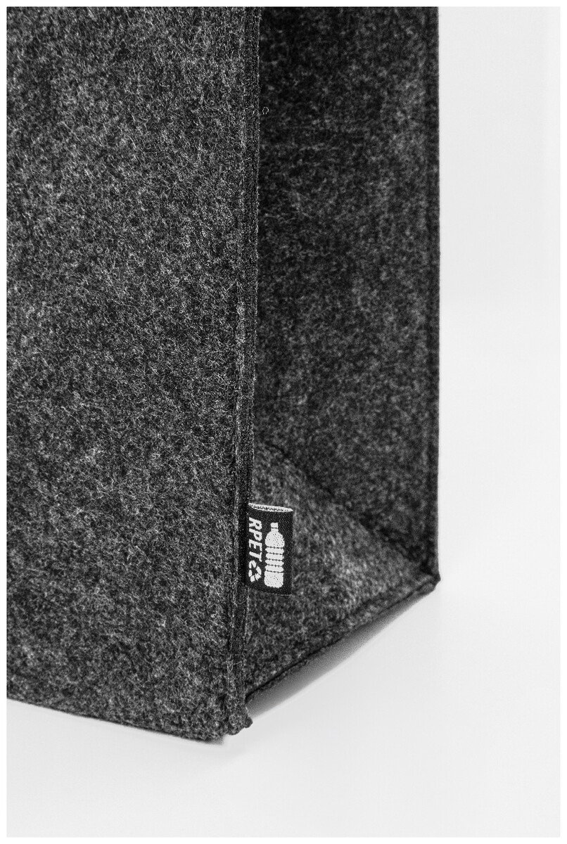Nákupní taška z RPET plsti s klínkem a dlouhými uchy. S výraznou etiketou z RPET.