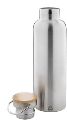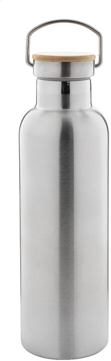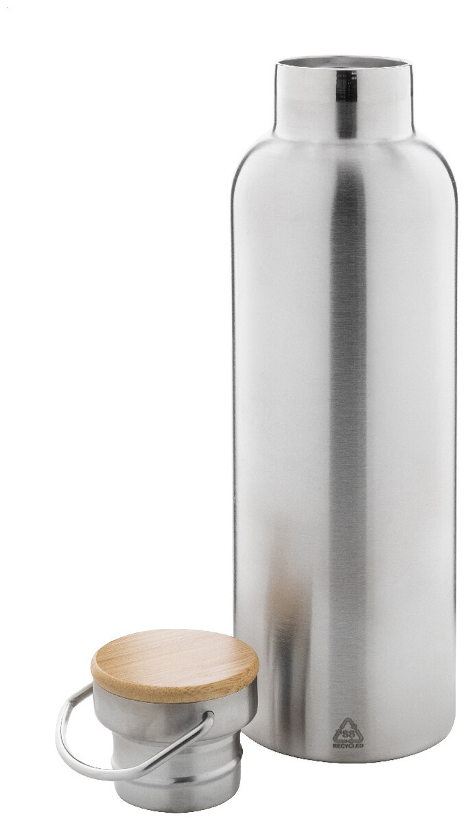 Dvoustěnná vakuově izolovaná láhev z recyklované nerezové oceli s bambusovým víčkem, 750 ml.
