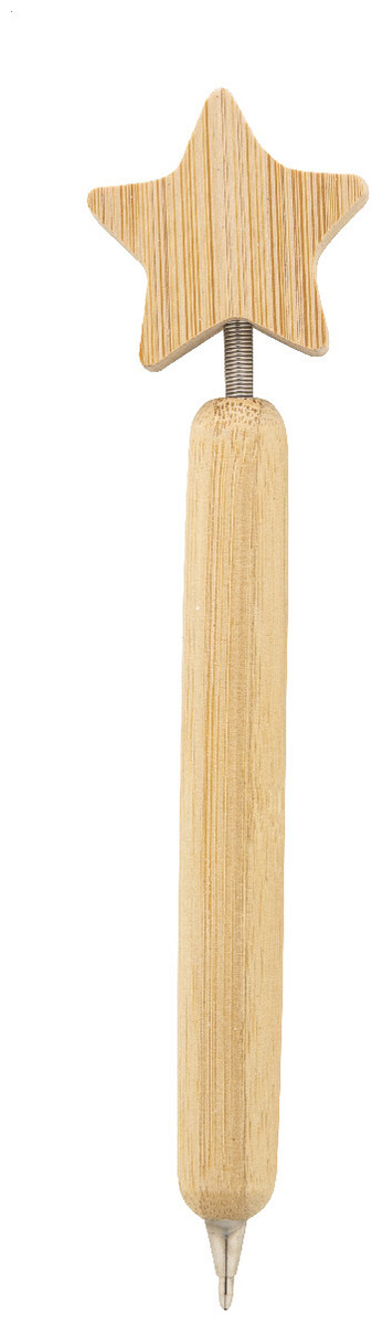 Bambusové kuličkové pero svánočním motivem nahoře. S modrou náplní.