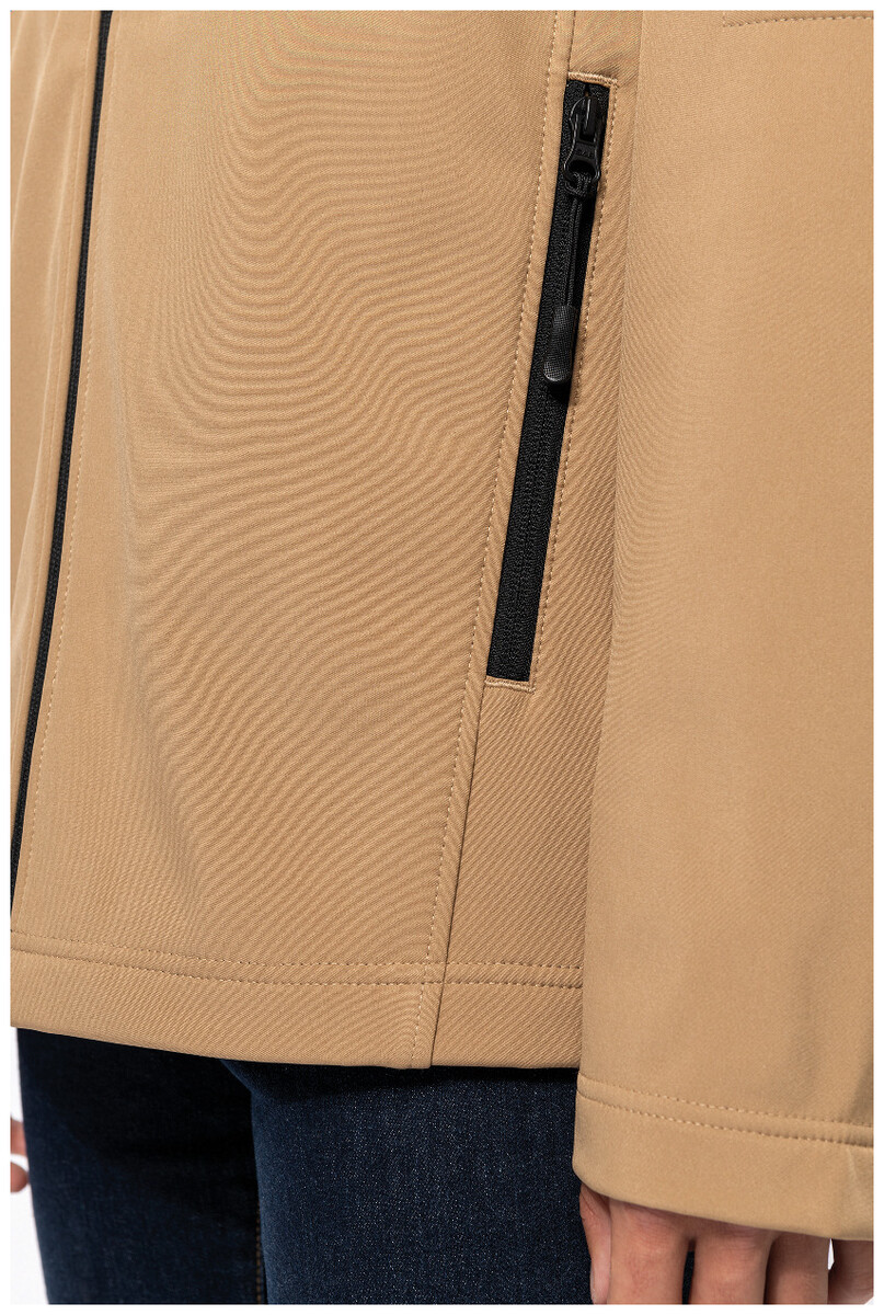 Třívrstvá, prodyšná, větru a vodě odolná softshellová bunda na zip s rukávy na zip a bočními kapsami. S prodyšnou střední vrstvou a vnitřní vrstvou z mikropolaru. Materiál: 95 % polyester a 5 % elastan, 300 g/m2. Výrobek značky Kariban.