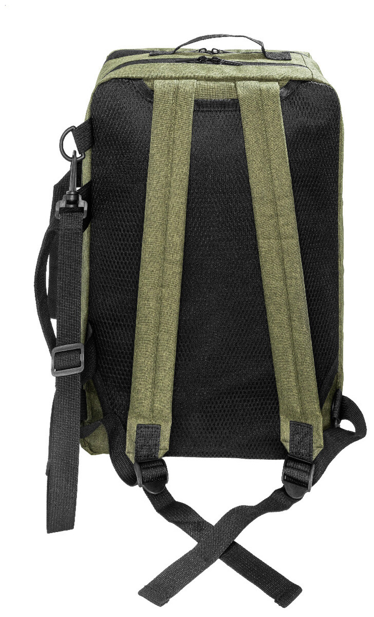 Dvojfunkční RPET batoh a taška na dokumenty s přihrádkou na zip, 2 předními kapsami na zip a polstrovanou přihrádkou na notebook (15"). S polstrovanými zády a ramenními popruhy. Součástí je i odnímatelný ramenní popruh pro použití jako taška na dokumenty. 600D RPET polyester s výrazným štítkem RPET.