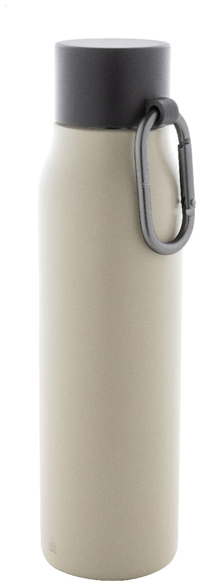 Dvoustěnná vakuová láhev z recyklované nerezové oceli s víčkem z PP a karabinou z recyklovaného hliníku. 500 ml.
