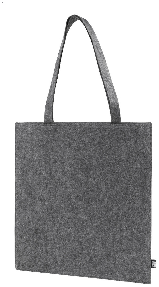 Nákupní taška z RPET plsti s dlouhými uchy. S výraznou etiketou z RPET.