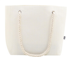 Plážová nebo nákupní taška z RPET s bavlněnými šňůrkami a spodním klínkem. S výrazným štítkem RPET.