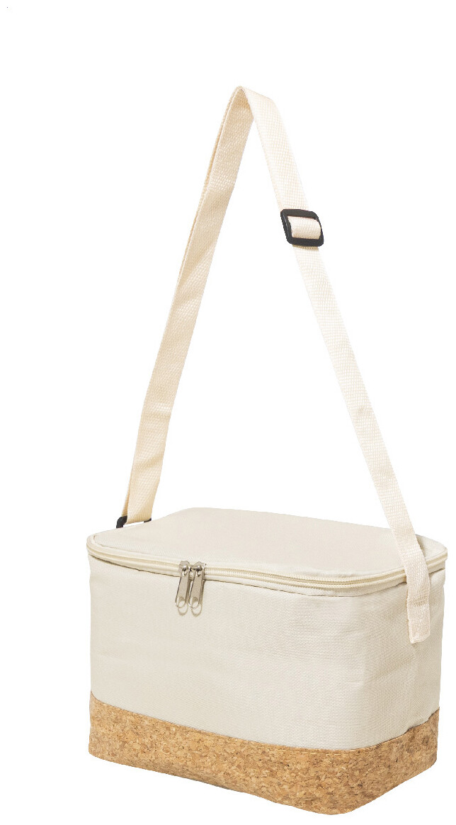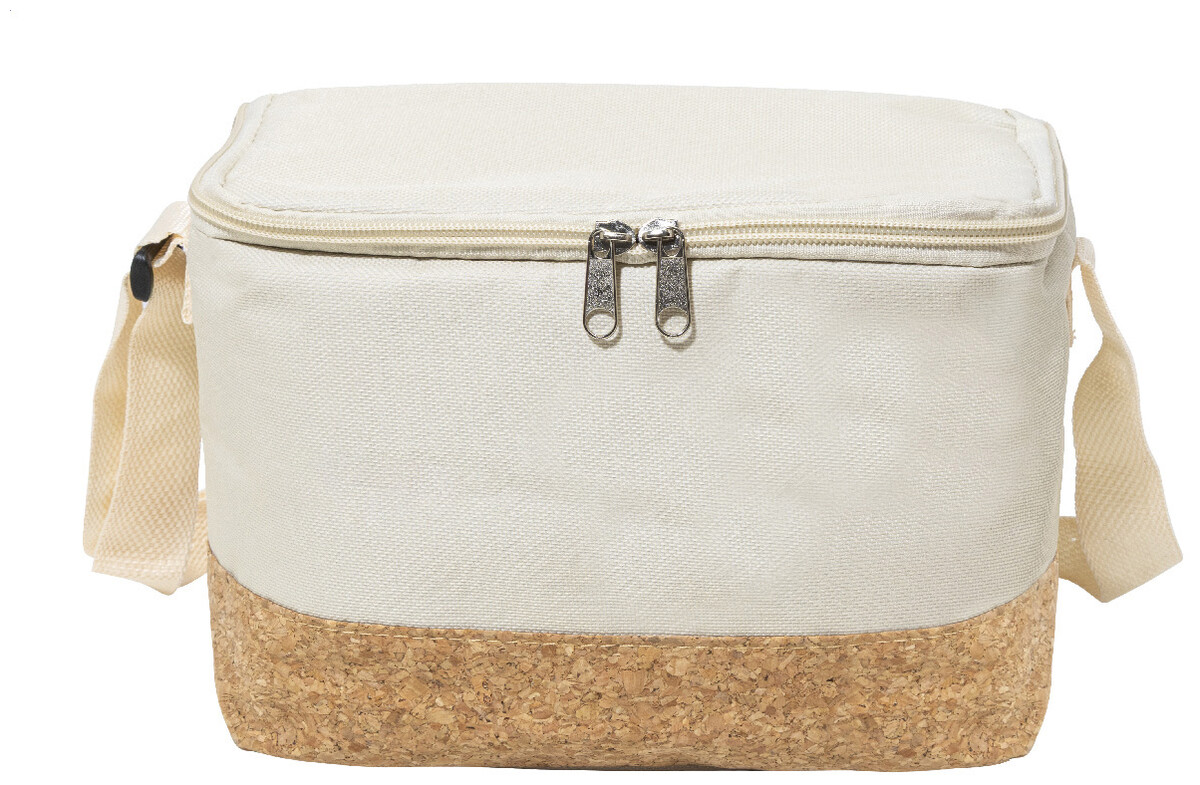 Chladicí taška na zip z 600D RPET polyesteru s přírodní korkovou základnou, PEVA polstrováním a nastavitelným ramenním popruhem. S výrazným štítkem RPET.