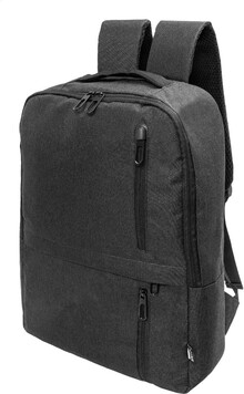 RPET batoh s hlavní přihrádkou na zip a 3 předními kapsami na zip. S polstrovanými přihrádkami na tablet (10") a notebook (15"), polstrovanými zády a ramenními popruhy. 600D RPET polyester s výrazným štítkem RPET.