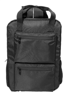Batoh z RPET s přihrádkou na zip, 2 předními kapsami na zip, polstrovanou přihrádkou na notebook (15") a bočními síťovanými kapsami. S polstrovanými zády a ramenními popruhy, kapsou proti krádeži a popruhem na kolečkách. RPET keprový polyester s výrazným štítkem RPET.