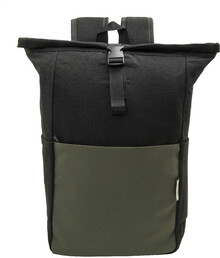 Rolovací batoh z recyklovaného plátna se zapínáním na přezku a přední kapsou na zip z měkké recyklované PU kůže. S polstrovanou přihrádkou na notebook (15"), bočními kapsami, polstrovanými zády a ramenními popruhy. 70% recyklované bavlny a 30% RPET polyesteru. S výrazným štítkem z recyklované bavlny.