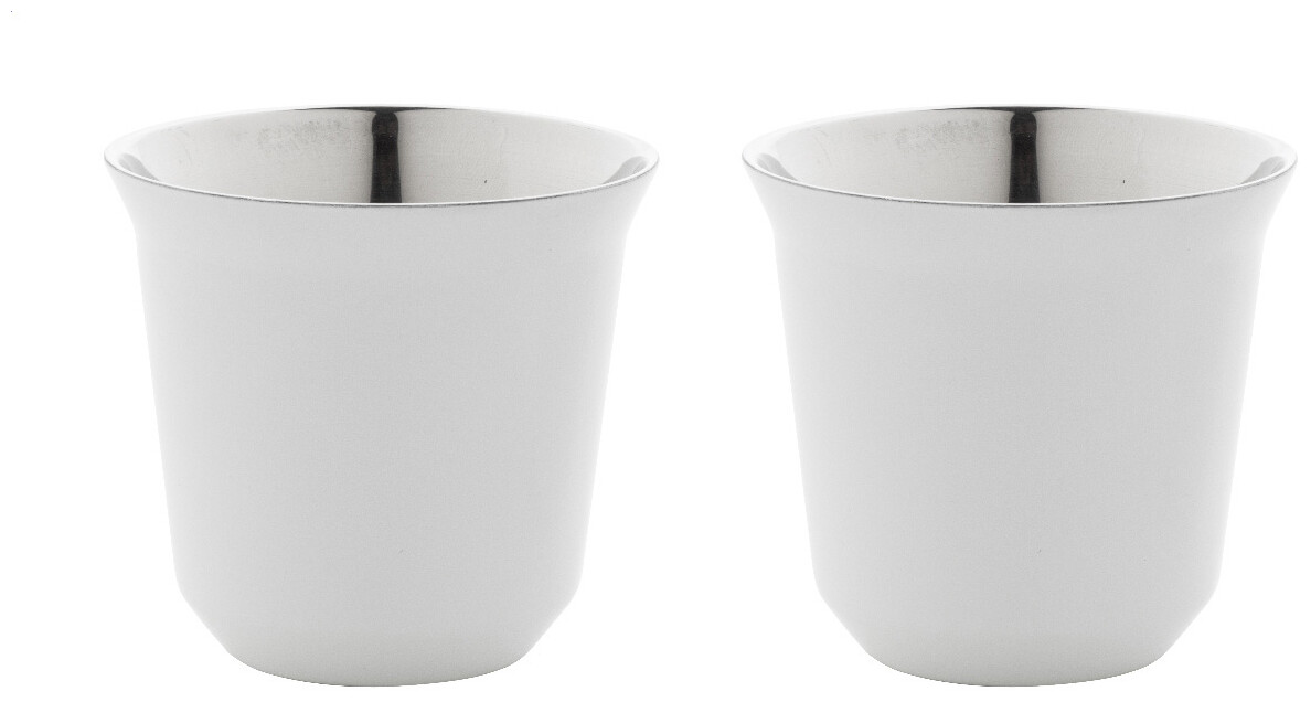 Sada 2 dvoustěnných termohrnků na espresso ve tvaru kávových kapslí z recyklované nerezové oceli, 80 ml. V krabičce z kraftového papíru.