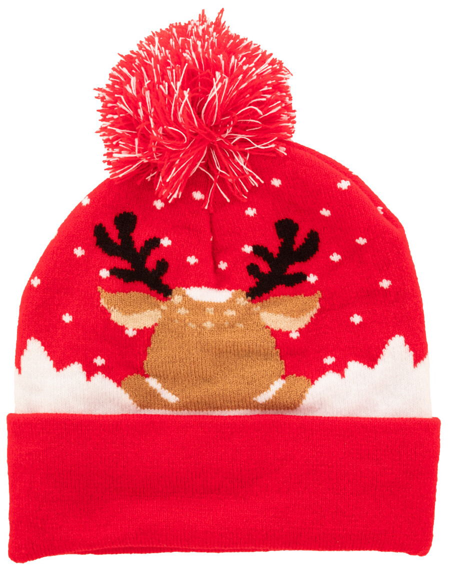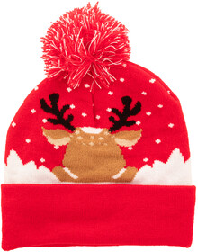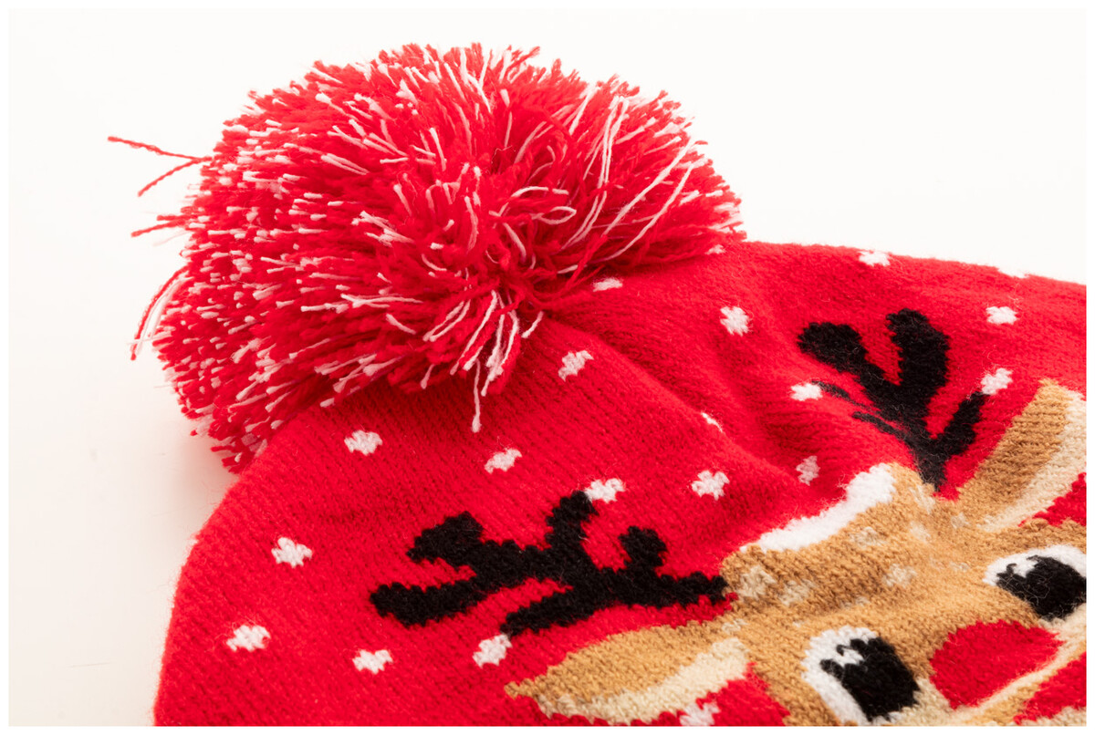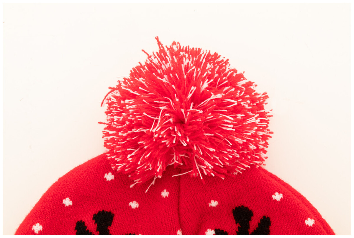 Pletená vánoční zimní čepice z akrylu s bambulí.