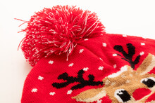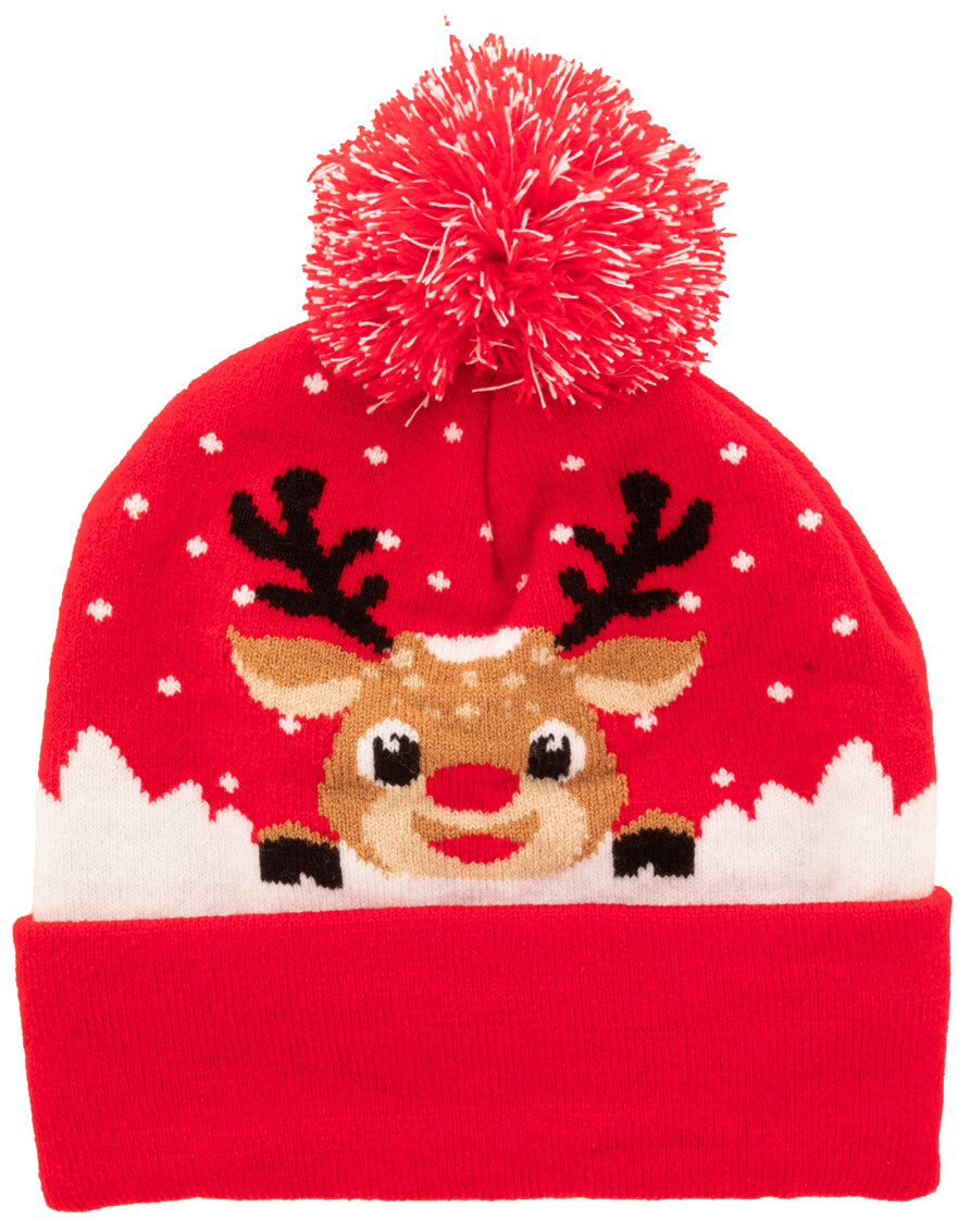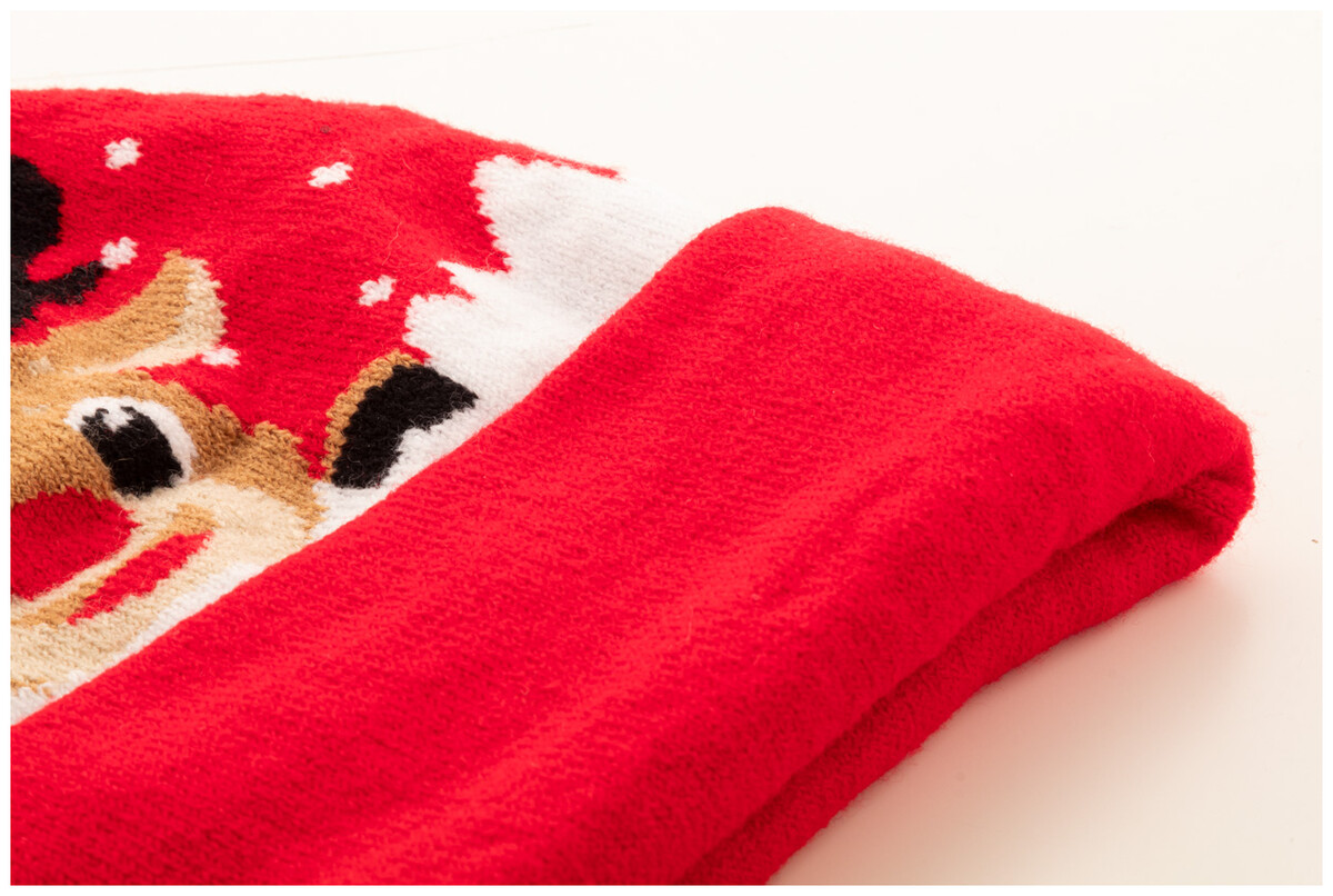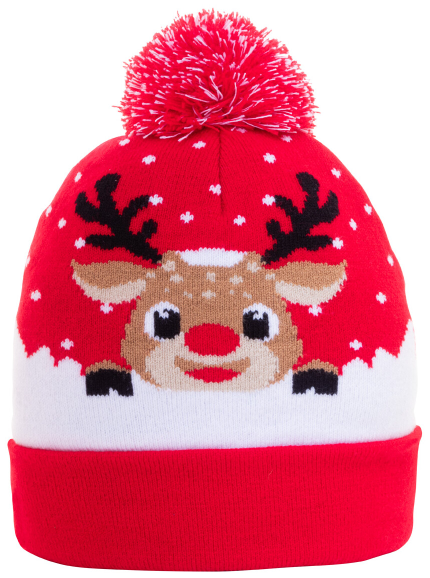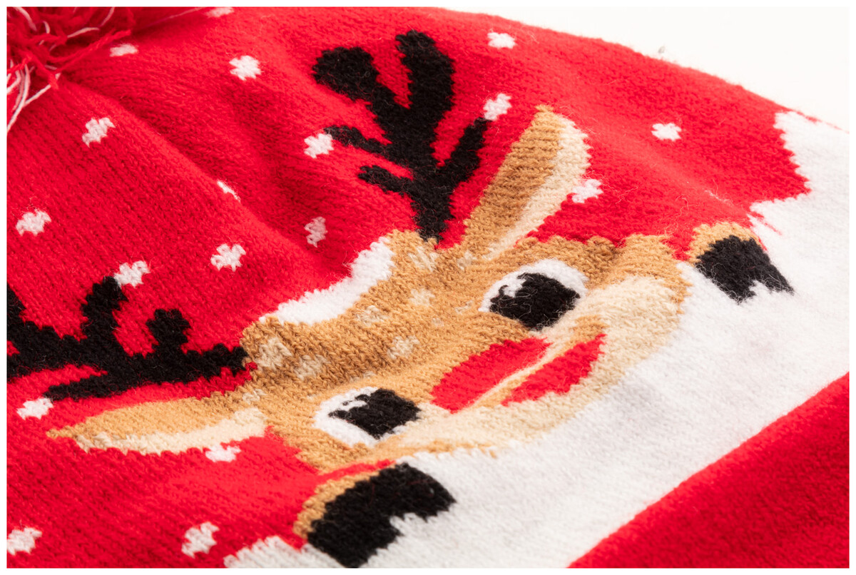 Pletená vánoční zimní čepice z akrylu s bambulí.