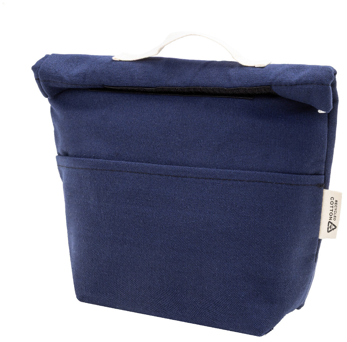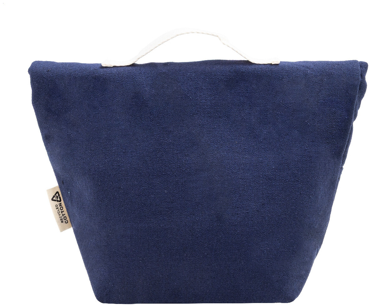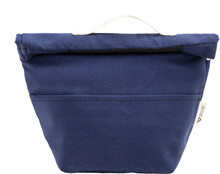 Chladicí taška z recyklovaného plátna s rolovacím vrškem, přední kapsou, hliníkovou výplní a zapínáním na suchý zip. 70 % recyklované bavlny a 30 % RPET polyesteru. S výrazným štítkem recyklované bavlny.