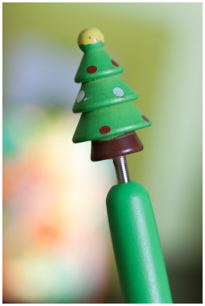 Dřevěné, vtipné kuličkové pero s vánoční figurkou na vršku. S modrou náplní.