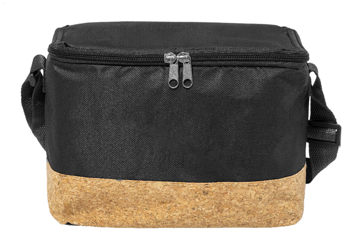 Chladicí taška na zip z 600D RPET polyesteru s přírodní korkovou základnou, PEVA polstrováním a nastavitelným ramenním popruhem. S výrazným štítkem RPET.
