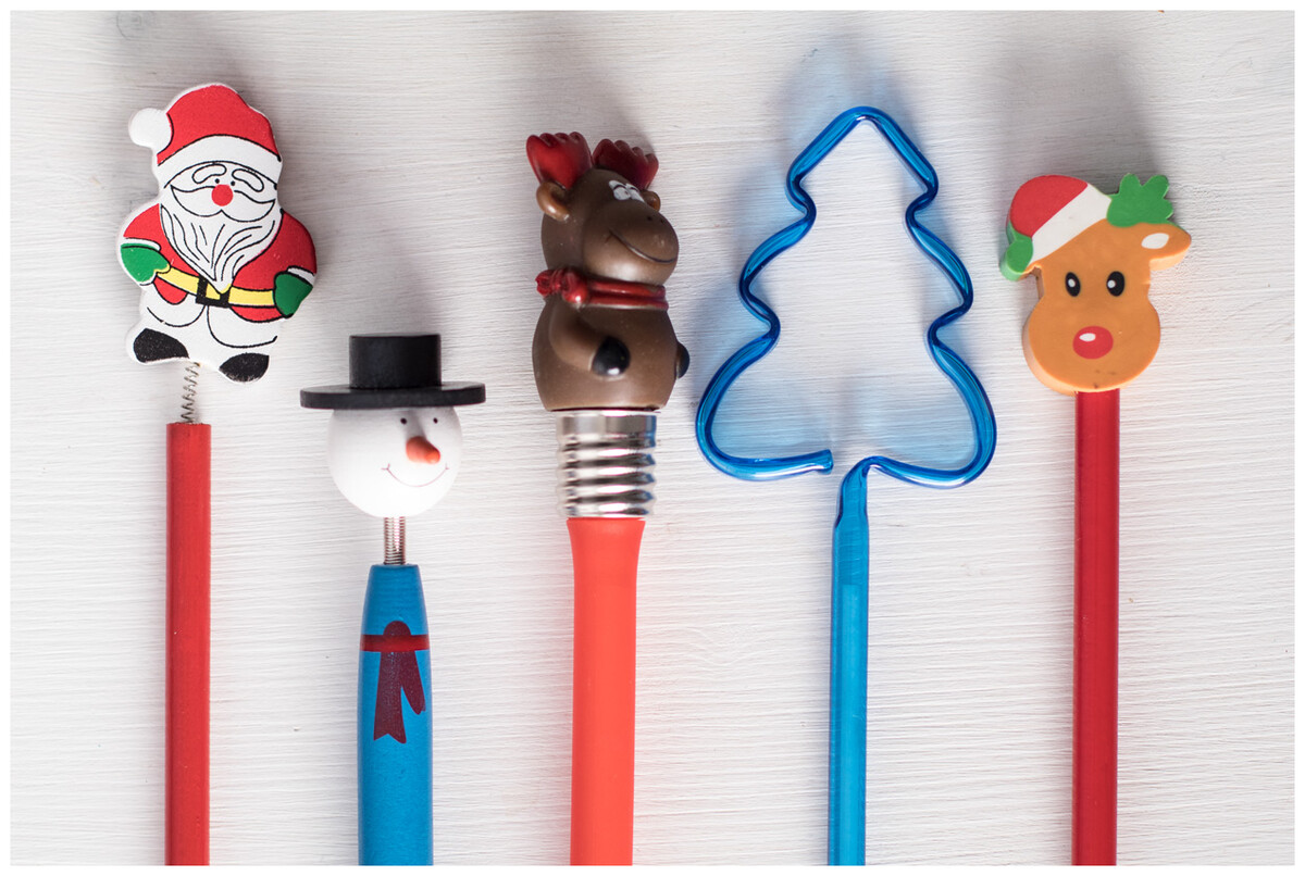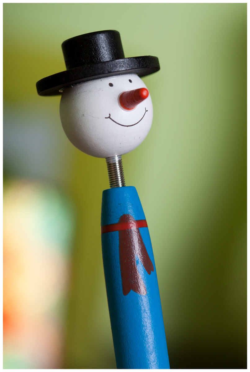 Dřevěné, vtipné kuličkové pero s vánoční figurkou na vršku. S modrou náplní.