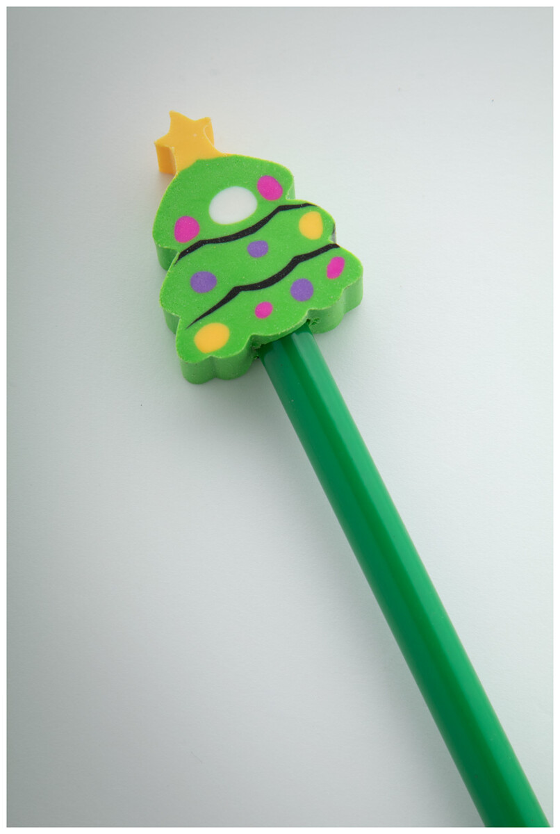 Dřevěná tužka s gumou ve tvaru vánoční figurky, ořezaná. Kvalita HB.