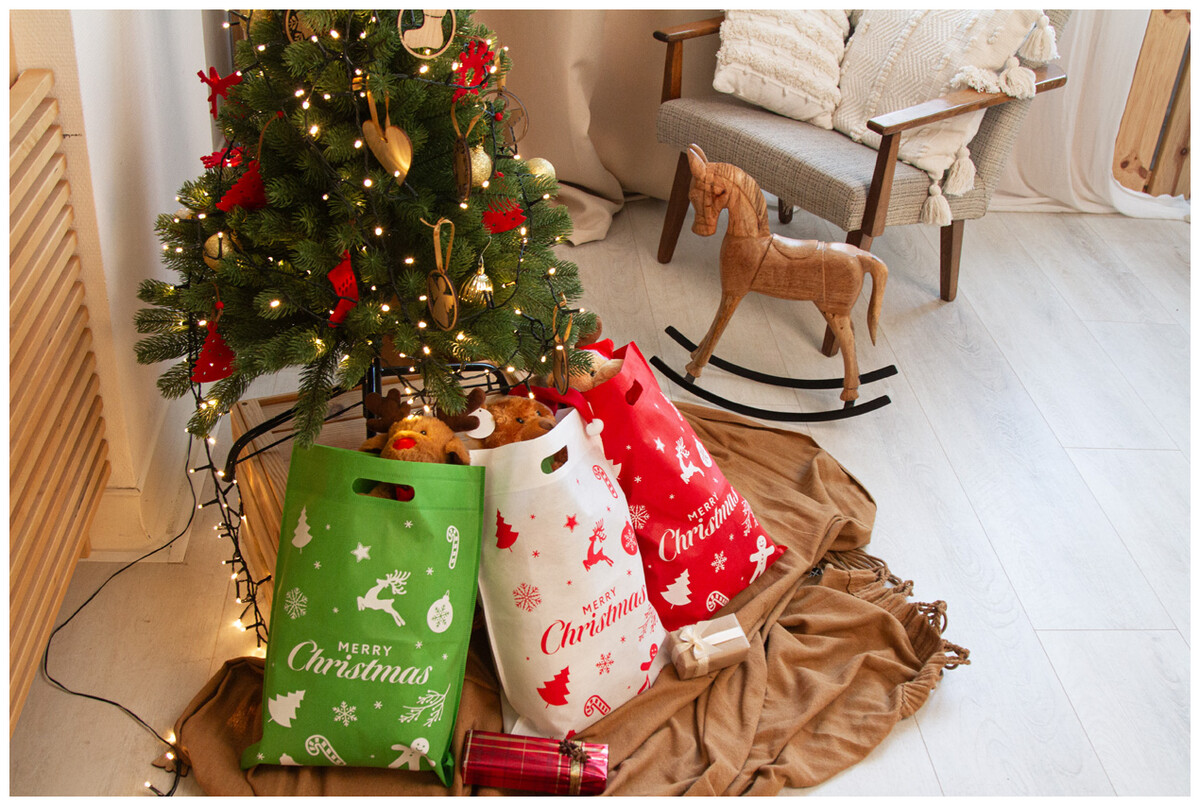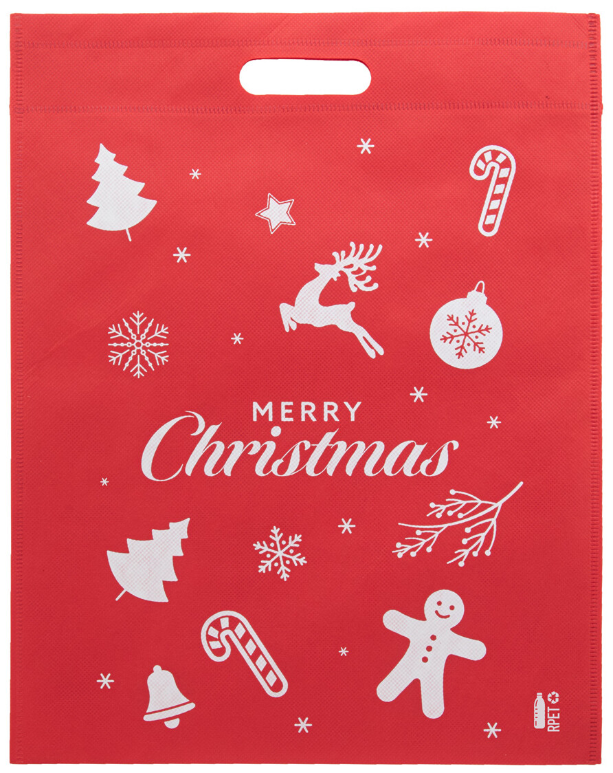 Nákupní taška z netkané textilie RPET s vánočním designem a vysekávanými uchy, 80 g/m2.