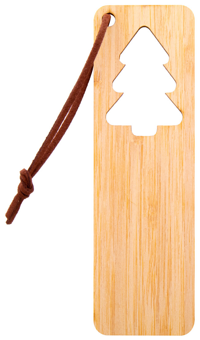 Bambusová záložka do knihy s vyřezaným vánočním motivem a poutkem z PU kůže.